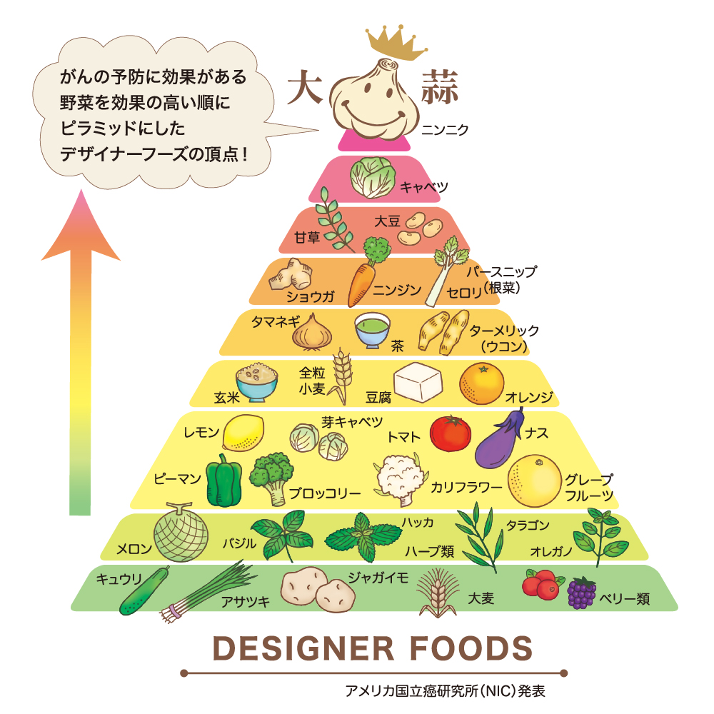 「デザイナーフーズNo.1」のニンニク100g に含まれる主な栄養価は表の通りです。